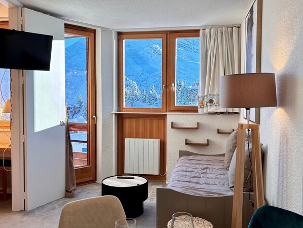 10m from ski slopes, 3rd floor, view resort, balcony, tv, ski locker, 26m², Avoriaz