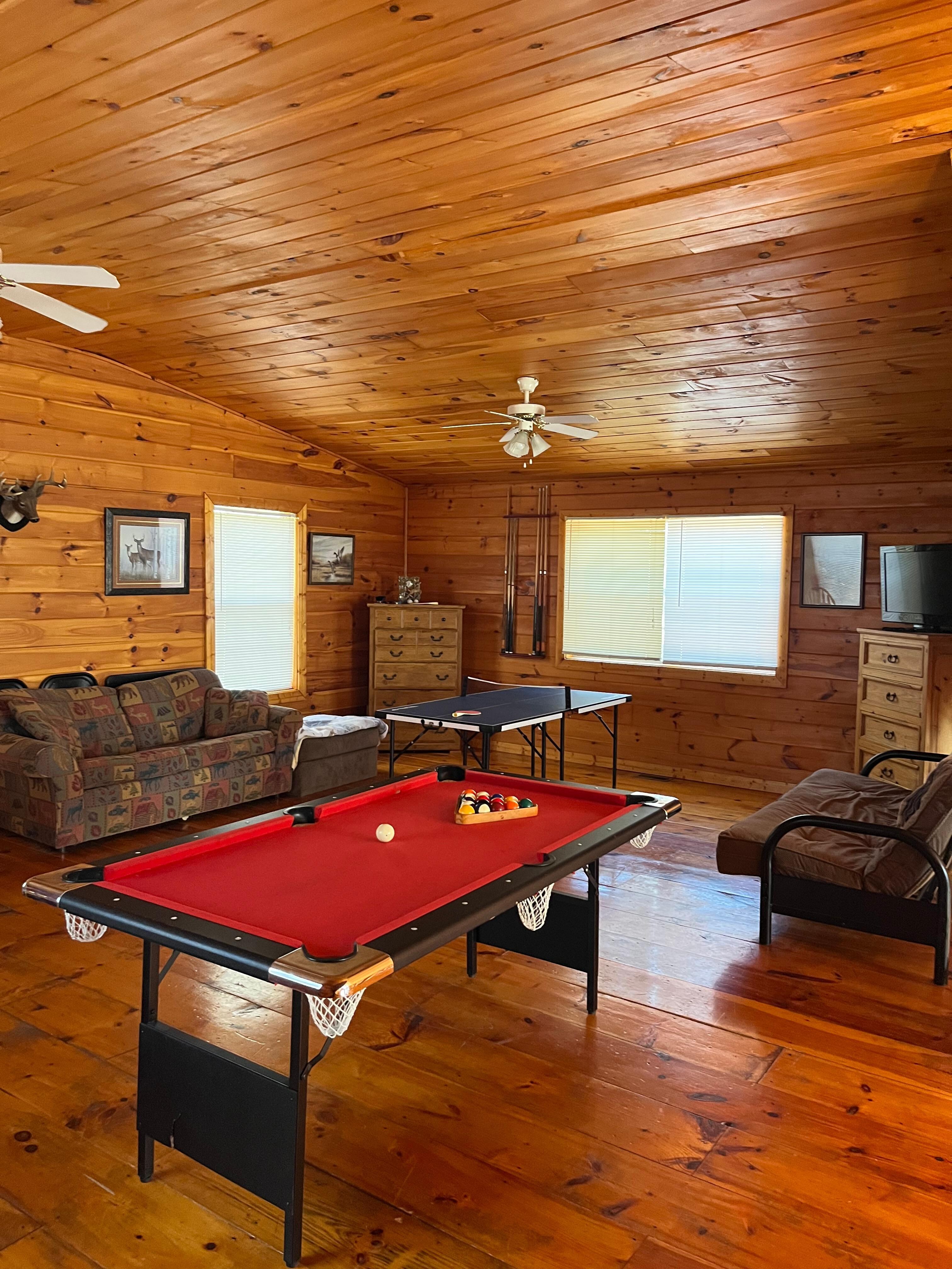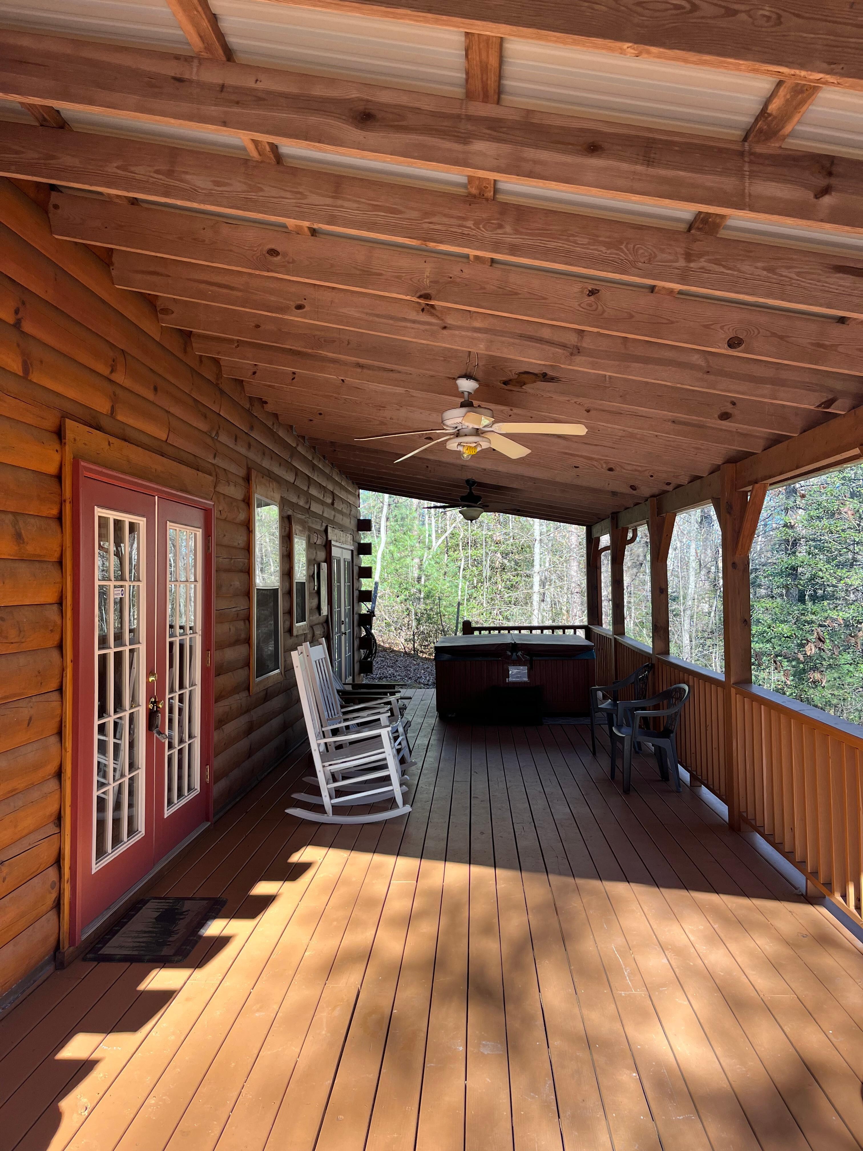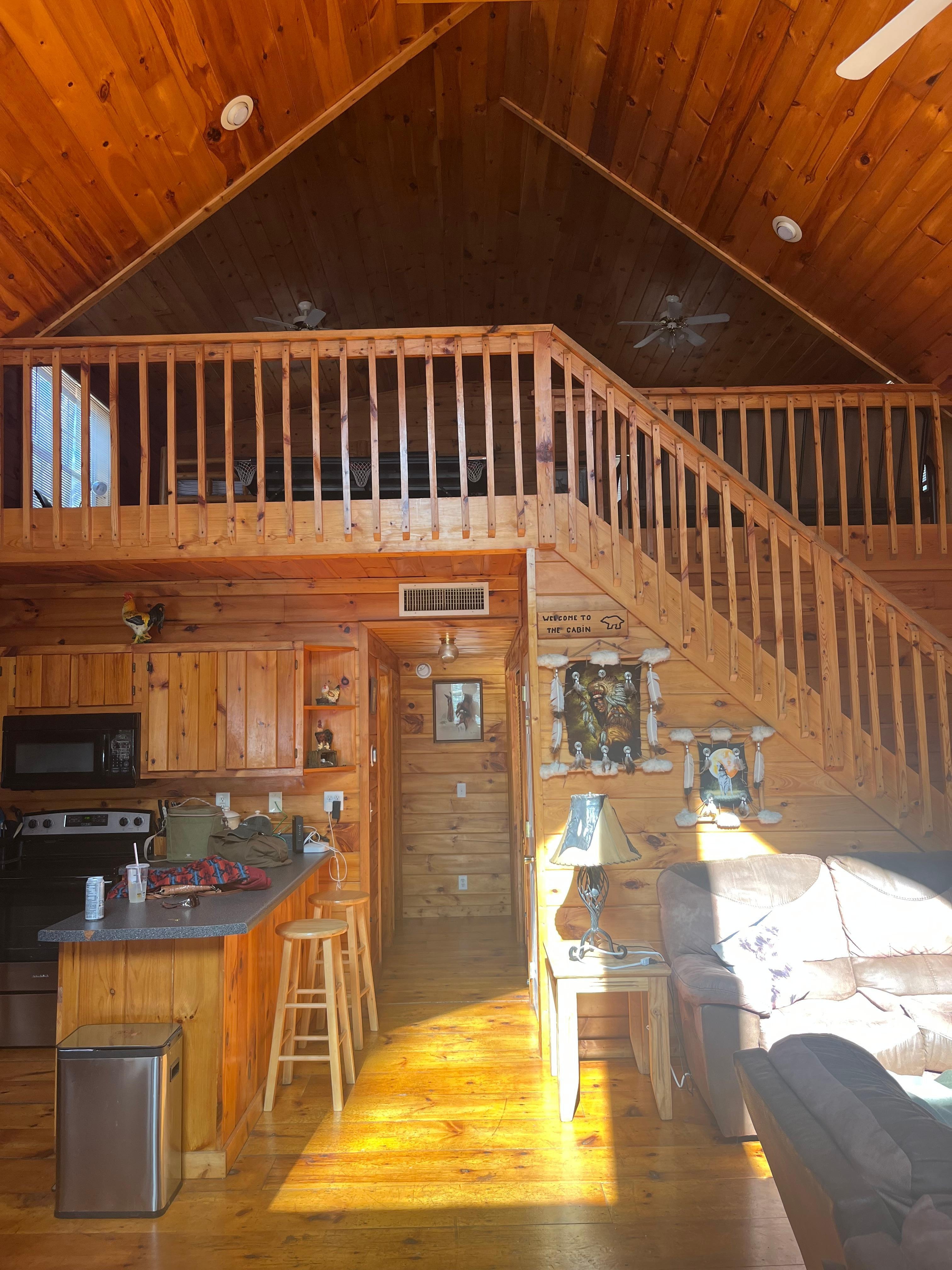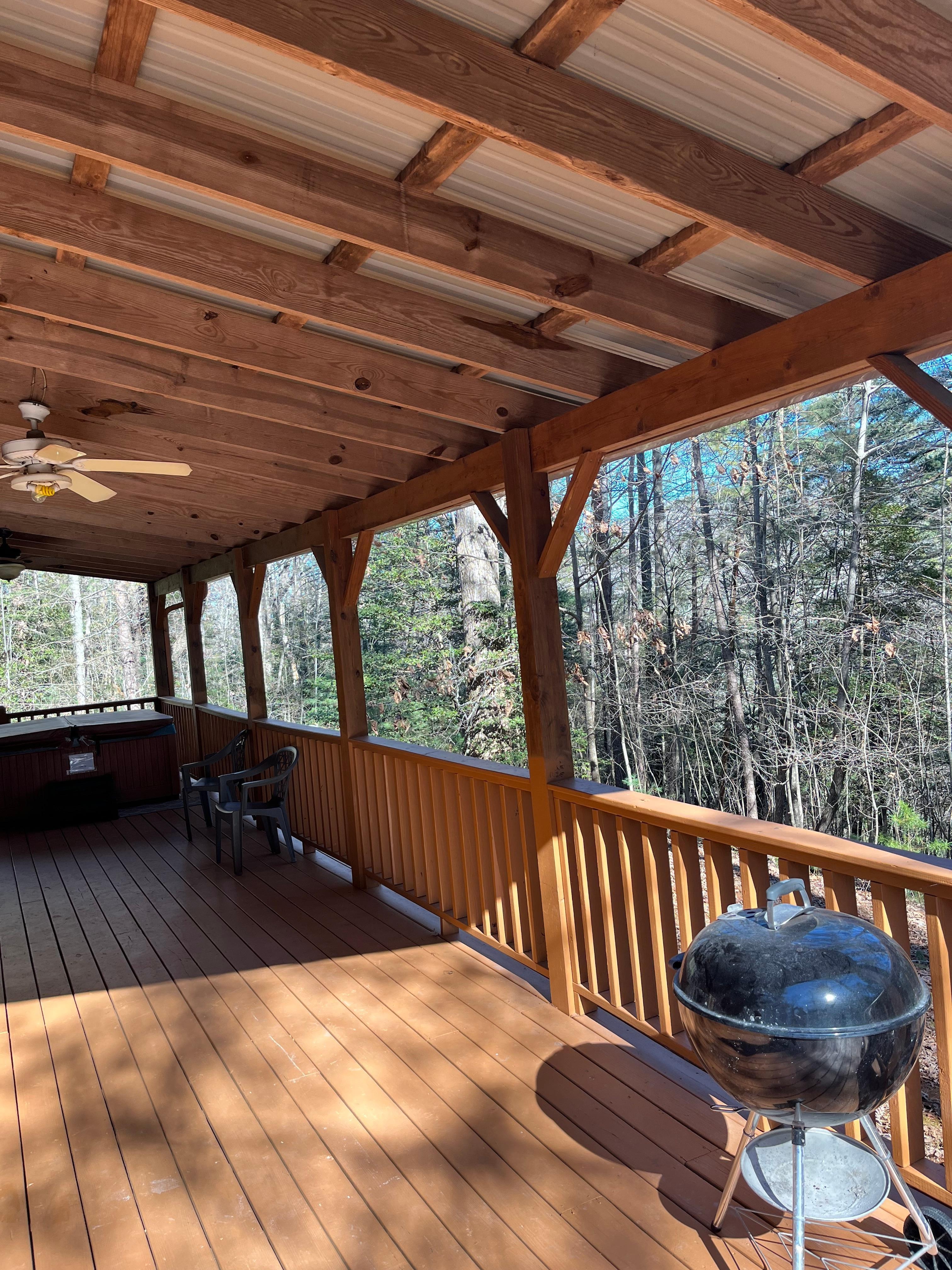 Romslige boligkvarter: En av tingene du vil like med denne hytta, er de romslige stueområdene. Denne hytta på 1500 kvadratmeter har et enormt loftområde, alt av tre, med vinduer på utsiden for å nyte utsikten. loftområdet har en køyeseng laget av Amish og en sovesofa for å få plass til ekstra gjester. Det dekkede dekkområdet har et boblebad for å slappe av og nyte naturen på sitt beste. Det er en gass BBQ. Rommene er komfortable med alle møbler som trengs for et lengre opphold. Sengene er nye og er superkomfortable. Alt i huset er nytt.