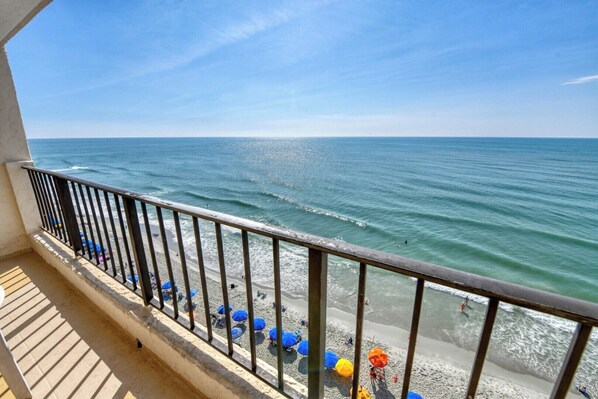 Atalaya Towers 903 is a three-bedroom, two-bath condo at this oceanfront complex located 0.5 miles north of the Garden City Pier. This unit features private oceanfront balcony adjacent to the master bedroom and living area, a fully-equipped kitchen complete with microwave and dishwasher, washer, dryer, and central heat and air conditioning. Sleeping accommodations include two queen and two twin-sized beds, plus a queen sofa bed. Amenities include an enclosed swimming pool, hot tub, outdoor swimming pool and elevators. Limit two parking passes per unit - one for on-site parking and one for the overflow parking lot. One car-sized trailer or gas powered golf cart is permitted if parked across the street from complex in the overflow parking lot and will be counted as one of the two parking passes. No electric (battery powered) golf carts permitted. No telephone. No smoking. No pets. Maximum occupancy: 8
