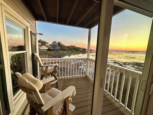 The property has 2 different balconies but there seems to be a favorite of those because of the views. The back balcony off the living area offers some of the best sunset and sunrise views you will ever find. Overlooking the Inlet, you will find yourself out here for hours just viewing the wildlife, scenery, and Moon at night.