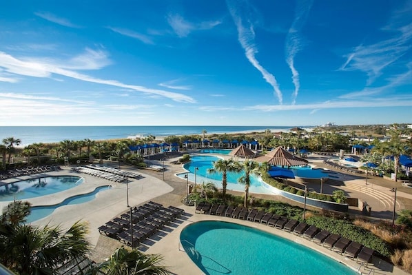 As a guest at North Beach Resort & Villas, you'll have access to an array of exceptional amenities. Take a refreshing dip in the expansive swimming pools, unwind in the soothing hot tubs, or sip on a tropical drink at the swim-up pool bar. The resort also offers direct beach access for leisurely walks along the shore and a fitness center to keep you active during your stay.