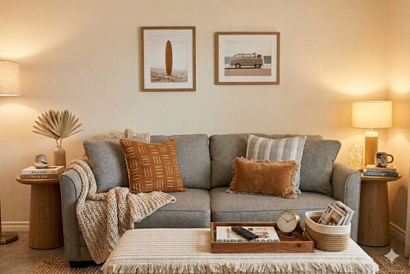 The space exudes a sophisticated coastal vibe with a minimalistic touch. The condo cleverly integrates distinctive South Carolina characteristics in its decor. It`s practical and ideal for your beach escapade, working remotely, and anything else in between. The kitchen is fully equipped with all the necessary amenities for a cozy stay. Whether you`re on a family holiday, golfing expedition, romantic getaway, or merely want to de-stress and recharge - 9 Palms is the ultimate choice!