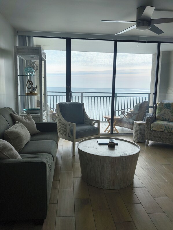 Oppdatert Ett soverom med en king size-seng. Helt ombygd fullt utstyrt kjøkken, alle nye apparater på topplinjen med kvartsittbenker. Det er en øy med 4 avføring som du kan nyte måltidene dine og havutsikten.