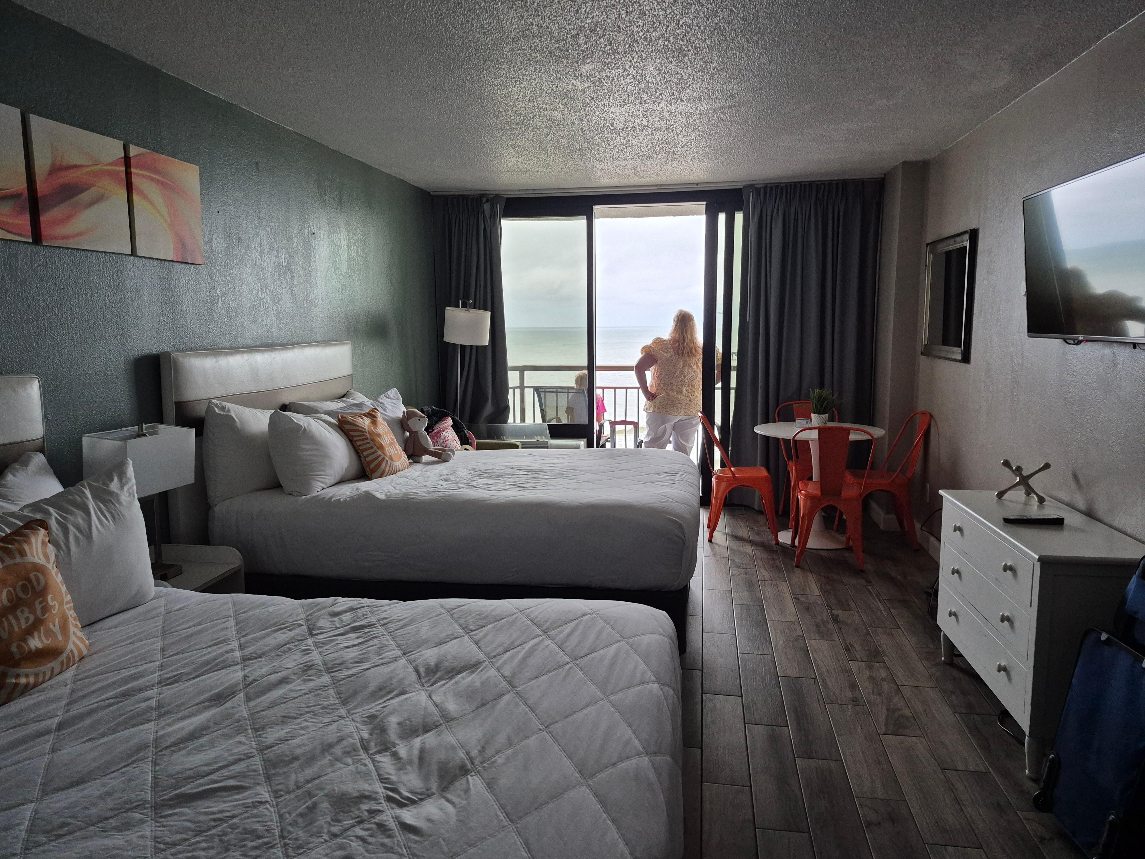 Denne vakre effektivitetssuiten ligger i åttende etasje i den fantastiske Patricia Grand. Våkn opp til en fantastisk soloppgang over havet før du drar ut på stranden! Ligger på 27th Ave N, ligger Patricia Grand midt i Myrtle Beach, bare noen få minutter fra Broadway på stranden, Coastal Grand Mall, Restaurant Row og alt annet! Bestill nå og start ferien i dag!