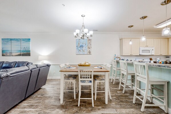 A sure bet for your coastal vacation, this lovely two-bedroom condo at Magnolia Pointe offers dual suites and an open-concept living area. The screened patio is ideal for alfresco dining and offers pond views as well as access to the shared yard space.