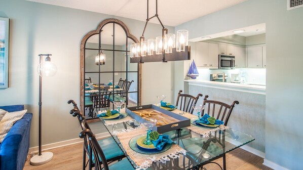 Seaclusion at Melrose Place er friskt, moderne og komfortabelt - det perfekte stedet å sette pris på familietid eller en liten gruppe venner. Kjøkkenet er fullt utstyrt med apparater i rustfritt stål, og alle hjemmets bekvemmeligheter, inkludert kaffetrakter, Crockpot, brødrister, blender og mer. Massevis av sitteplasser i spisesalen eller nyt et måltid ute på skjermen verandaen! Sengetøy og håndklær tilbys. Med TV og DVD-spiller i stuen og TV begge soverommene, dedikert høyhastighetsinternett / WiFi, et utvalg brettspill og til og med hårføner på badene, vil du ha mer plass i kofferten.