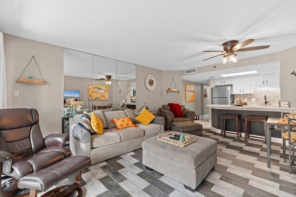 Escape to Coastal Serenity, an idyllic 1-bed retreat with a hint of ocean view. Relax in the comfy interior with sparks of silver, yellow, and blue. Indulge in resort-style amenities: outdoor pool, lazy river, hot tub, and indoor pool. Take a break from the heat and enjoy some nice eats in the on-site Restaurant. You'll have both a private balcony and resort balcony where you can take in the Ocean Breeze in the evening. Your perfect coastal getaway awaits in this tranquil haven near the beach.