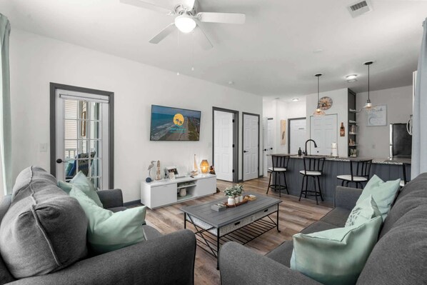 Family room: Access to balcony via sliding glass doors. Sleeper sofa.