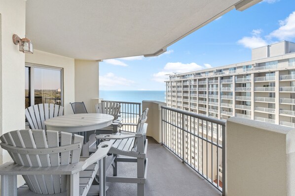2 Br condo is on the 12th floor of Royale Palms, connected to Hilton, Myrtle Beach. You will be amazed by the open floor plan and the spacious feel of the living & dining area. You will also be amazed by the large private balcony which is accessed from the living room and both bedrooms. Renovated with new living room furniture, new beds, new artwork and freshly painted