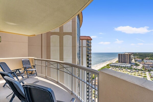 Denne vakkert innredede plantasjevisningen er sikker på at du overgår dine forventninger. De store, romslige rommene og to spisebord med plass til 12 gjør denne leie et perfekt reisemål for små grupper og utvidede familier. Høyt oppe i 26. etasje, tilbyr den store omkledningsbalkongen vakker utsikt over landskapet innenfor Kingston Plantation og solnedganger, i motsetning til alt du har sett før.