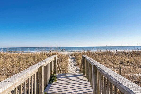 Beach: Walk across the street and use one of the entry access points across the dunes! Significantly less crowded than the large resort areas. Multiple outdoor showers to rinse off sand are located throughout complex. We provide beach chairs, umbrellas, blankets, and toys in the condo for you to use.