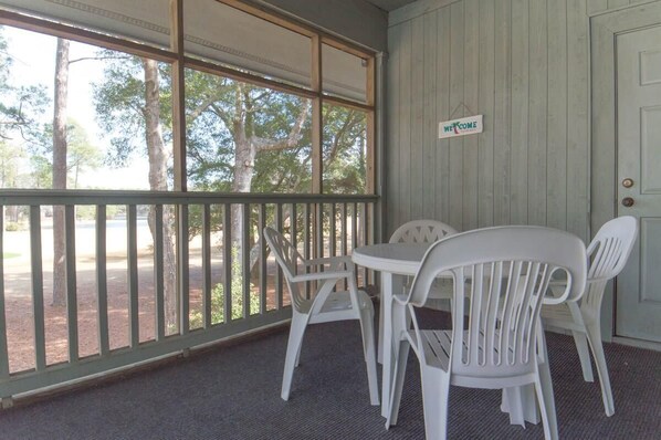 Second floor 2 bedroom / 2 bath condo with screened in porch overlooking the driving range. Complete kitchen, dining room/ living room combination, washer/ dryer, sleeps 7. Quite golf community and a short drive to the beach. Amenities for everyone to enjoy. Such as: pools, fitness center, tennis courts. Cable TV in living oom. You must be at least 25 yrs of age or older to rent the proeprty. No Motorcycles, Trailers, RV's permitted on property.