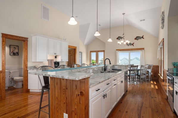 Our home is packed with amenities to reduce what you have to pack, buy or rent. Our goal is to provide a home where most of the things you want are already here- we have been coming to the OBX for over 30 years and hated how most rentals you have so much to bring since the homes had limited amenities or things were old and damaged (we update house photos yearly so you know what to expect). We offer an inground saltwater pool (option to have pool heated for a fee), 7 person hot tub, game room with pool table, multicade arcade game, smart tv's & surround system, bikes, pool & beach amenities, tons of parking, just a bike ride away from many favorites (restaurants, grocery stores, shopping, Jockey's Ridge), less than 1/4 mile from the hospital.