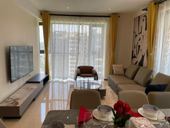 Charming 2-bedroom apartment with fitness room and AC in Nairobi-GTC JCKY KEMNTS