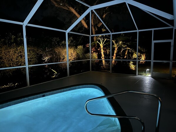 Private house with heated pool in the custom tropical garden.