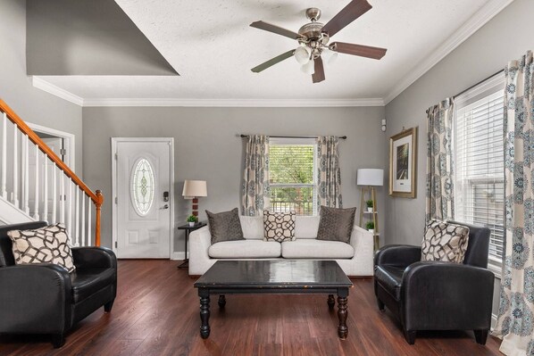 Looking for an affordable stay with easy access to Broadway? Eleven Eleven offers a stylish and budget-friendly option in North Nashville’s Buchanan Arts District. This area has a rich history and is undergoing revitalization with new restaurants, coffee shops, and creative spaces popping up. It’s close to Germantown, MetroCenter, and just a short drive from downtown. This spacious 3BR/2BA home is designed to comfortably host up to ten guests, making it an ideal spot for group getaways. With a private backyard featuring a fire pit and a layout designed for comfort, this home is perfect for groups who want the best of both worlds—convenience and a local neighborhood vibe.