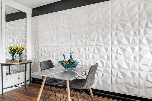 Our top floor studio has everything you will need for a fun and convenient vacation or staycation! While our 3D White Wall is certainly a feature that is popular among our guests, we have also designed this condo to maximize space and have supplied everything you need to feel right at home...and we want you to feel this way, its important to us!