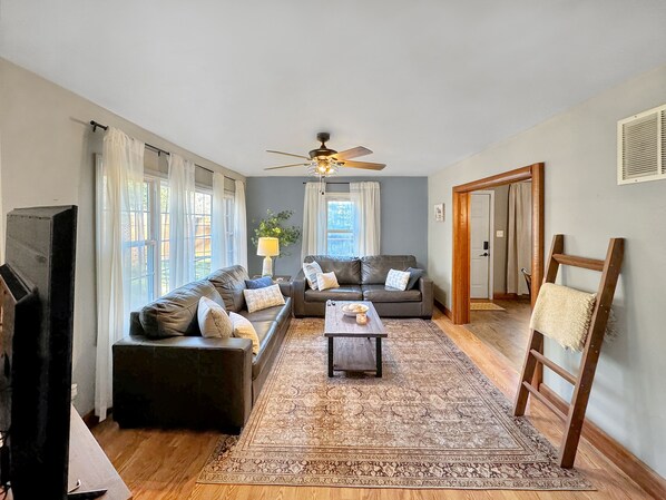 Inside, unwind in the cozy living room or whip up a feast in the fully equipped kitchen. With TVs in every room and high-speed Wi-Fi, entertainment and connectivity are at your fingertips.
