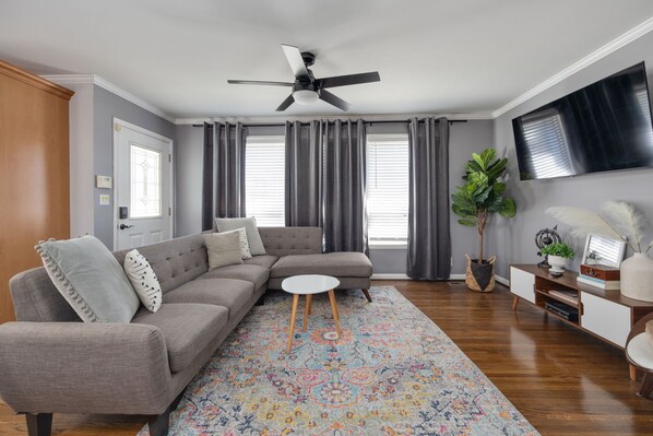 Discover your perfect Nashville getaway in this modern 3BR home that sleeps 10, just 7 minutes from Broadway and near Music Row. Enjoy spacious living areas, a stylish primary suite, free parking, and modern amenities. Ideal for families or groups, it’s close to local attractions, Whole Foods, and vibrant city life. Explore music, culture, and festivals, then unwind in comfort after a day of adventure in the heart of Nashville.
