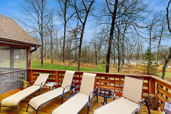 Inside, you'll find a large and spacious living area with high, vaulted ceilings, attractive and comfy furniture, lots of natural light, and clean carpeted floors. The wood-burning fireplace will keep everything toasty during those frosty winter evenings and the central AC will ensure a cool home during the summer. When you're not out at the beach or fishing Lake Arrowhead, hang out in the entertainment area to watch a good DVD or Netflix movie on the large TV. Use the small and major appliances in the full kitchen to prepare a few delicious side dishes then fire up the private gas grill to throw a little char on today's fresh catch. There is seating available at the breakfast bar, the dining table has seating for more guests, and you can always take your meals al-fresco on the furnished screened-in porch. The deck is a fantastic place to enjoy your first cup of morning coffee. Gather everyone around the firepit to enjoy an evening of stargazing while you toast up some delicious 'Smores with the little ones. Speaking of the kids, they'll love spending time in the game room, where they'll find a Ping-Pong table, a pool table, and even a dartboard to play with.