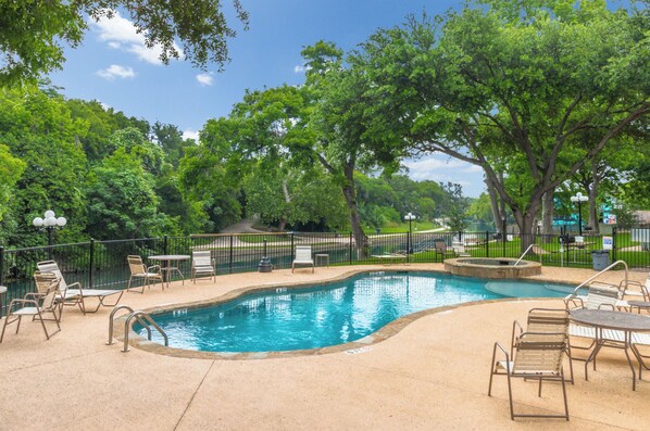 Flott beliggenhet og nær alle New Braunfels har å tilby. Schlitterbahn, Landa golfbane og park ligger rett over elven. Nyt en dag rør på Comal elven eller bare henger i solen på leiligheten basseng og bar-b-que på de mange groper som ligger på stedet. Bare en kort kjøretur til Gruene som er hjem til den eldste danselokale i Texas, Canyon Lake, eller San Antonio.