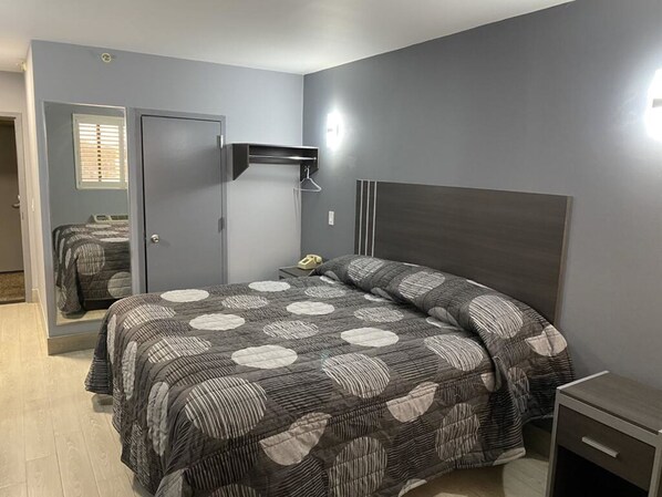 The room seemed clean at first glance. Upon further inspection, it’s like the cleaners swept everything under the bed and other places(fries, hair,etc). The hotel has a odor that doesn’t go away.. even after leaving I had the smell on my clothes.. it didn’t go away until I washed all my clothes and took 2 showers.The parking was good, they have a big parking lot in the back. But I would only stay here again if everything else in the area was booked and I had no other option. Honestly you can compare this place to staying the projects.. also the doors make noises so the whole time I’m thinking someone is trying to get in my room it’s just the vibrations from the building. I don’t usually leave reviews but I’m inclined to warn others to spend the extra money and stay somewhere else. That’s my honest review.
