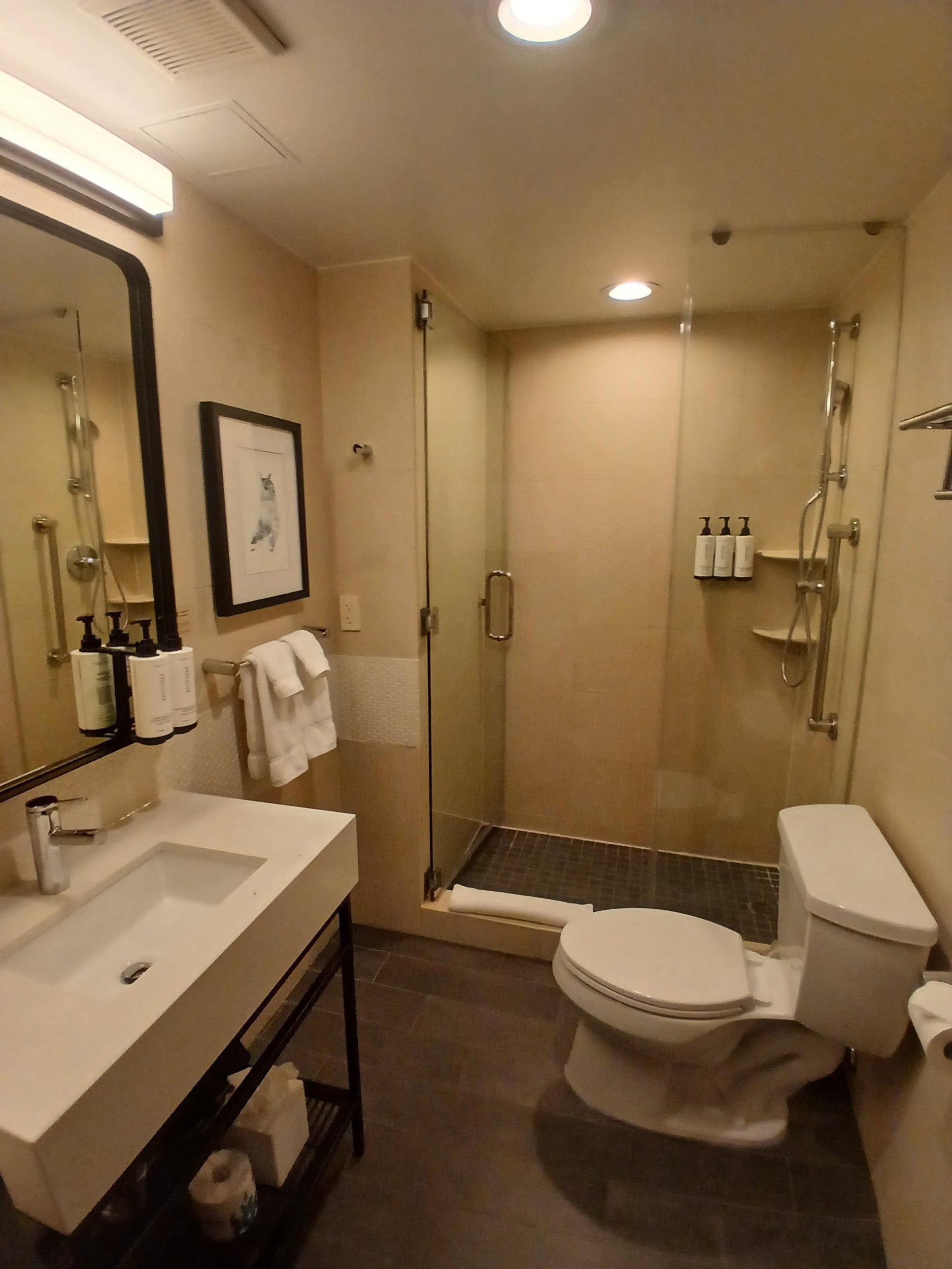The man at the front desk who was working graveyard was not so attentive and kind. I mentioned the shower door in my room was not properly screwed to glass door where one was completely off and the mid part was very loose. The door could not shut properly and the sink was clogged, the phone to call front desk would not go through and it was quite noisy in the room…other than that the woman who checked me in was very kind, helpful and went above and beyond. They also left me a birthday card and some goodies, thank you.