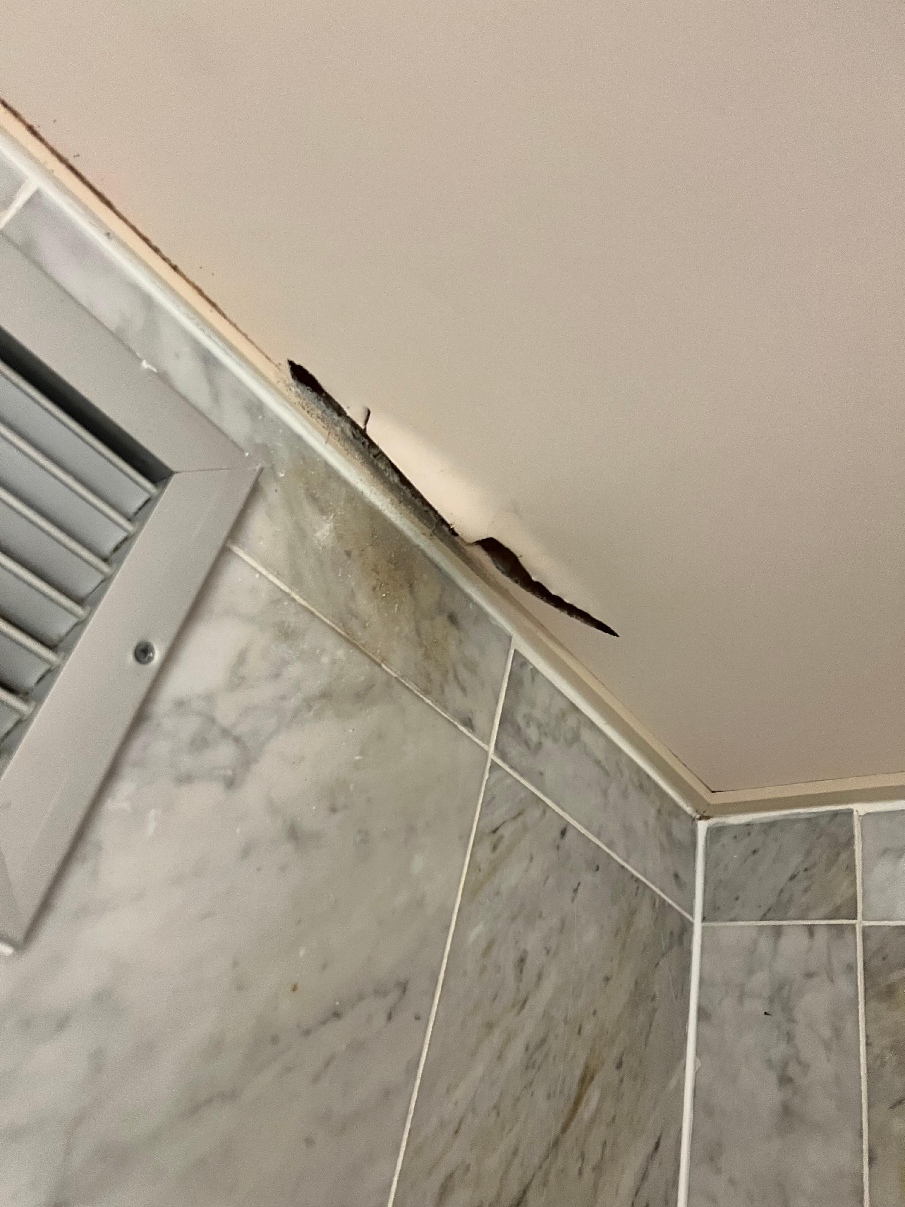 The room was extremely small — there wasn’t even enough space for two suitcases, which made the stay uncomfortable from the start. The bathroom was also in poor condition, with the ceiling showing clear signs of water damage and deterioration.