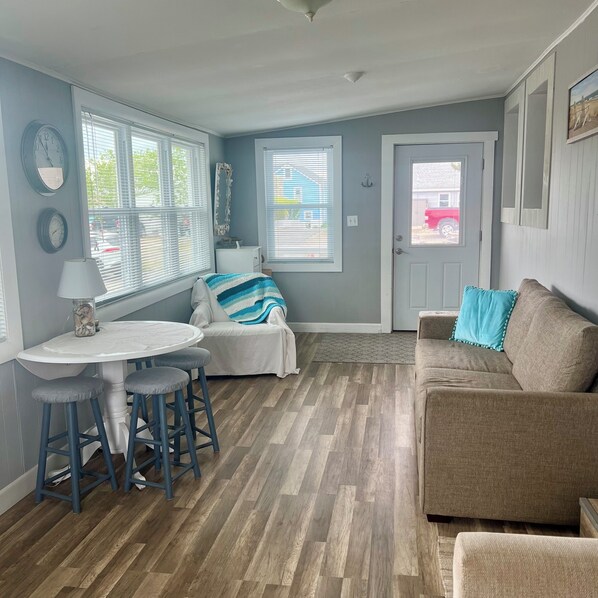 My husband, daughter, son-in-law and I stayed at this property from July 1-5 and really enjoyed our stay. It was very helpful that we were not required to stay a minimum of 1 week because we only had five remaining days after attending a family wedding in the White Mountains of NH the weekend before. The home was super clean and well-maintained. Although only two bedrooms, there is a front room of the house with two pull out sofas that easily could accommodate more guests, if needed. The house was conveniently located maybe a 4 minute walk to the beach. There was an ice cream store, a small grocery, a bar/cafe and a pizza business close by. (Pizza place was closed when we investigated- not sure why.) The beach was lovely and clean as well as not too crowded, despite it being July 4th. My husband enjoyed morning walks at the Parker River Wildlife Refuge nearby. As it was a short drive away, we were able to go to restaurants and bars in Newburyport (highly recommend Loretta). The home had little amenities that made a huge difference, like a Keurig Coffee maker and pods, beach chairs and family board games, all of which we availed ourselves of and enjoyed. Check in and check out was simple with the lockbox and posted procedures. I do wish there was a second bathroom (or even a half bath) but we learned to be quick and give everyone a chance in the bathroom as needed. (An outdoor shower would have helped!) Overall an excellent stay and a communicative owner! Thanks! Will be back