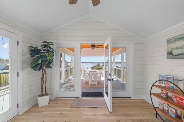 There are tons of family fun games supplied in the shed. Take in a game of corn hole, spikeball, horseshoes, or badminton on the expansive back yard. Enjoy getting on the water with multiple kayaks and paddle boards onsite which can easily be placed in the water from the newly installed kayak launch. Drop in a fishing line or tie up one of the crab pots from the sunny dock. Want to venture out a little further on the water? You can launch your boat or jet ski at the nearby public boat ramps and tie up to the dock when the tides are right.