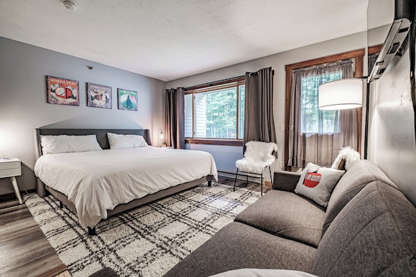 I stayed here with my two teenage boys and it was perfect for us. They took the king bed, and I slept on the single bed. Everything was clean, and convenient. We loved the pool, hot tub and sauna, as well as it being ski in/ski out. Great location! We would definitely stay here again!!!