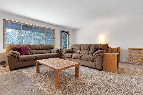 Experience ski-in, ski-out convenience at its best with this townhouse, offering all the comforts of home just steps from the slopes. Upon entering, you'll find a spacious entry area with ample room to store your gear. The main floor features an open layout with a kitchen, dining area, and seating space. Additionally, there's a bedroom with a queen bed on this level. Upstairs, you'll discover two more bedrooms and a full bathroom. The lower level boasts a living area, another full bathroom, and a kitchenette. This unique townhouse provides the perfect retreat for your next trip to Sunday River.