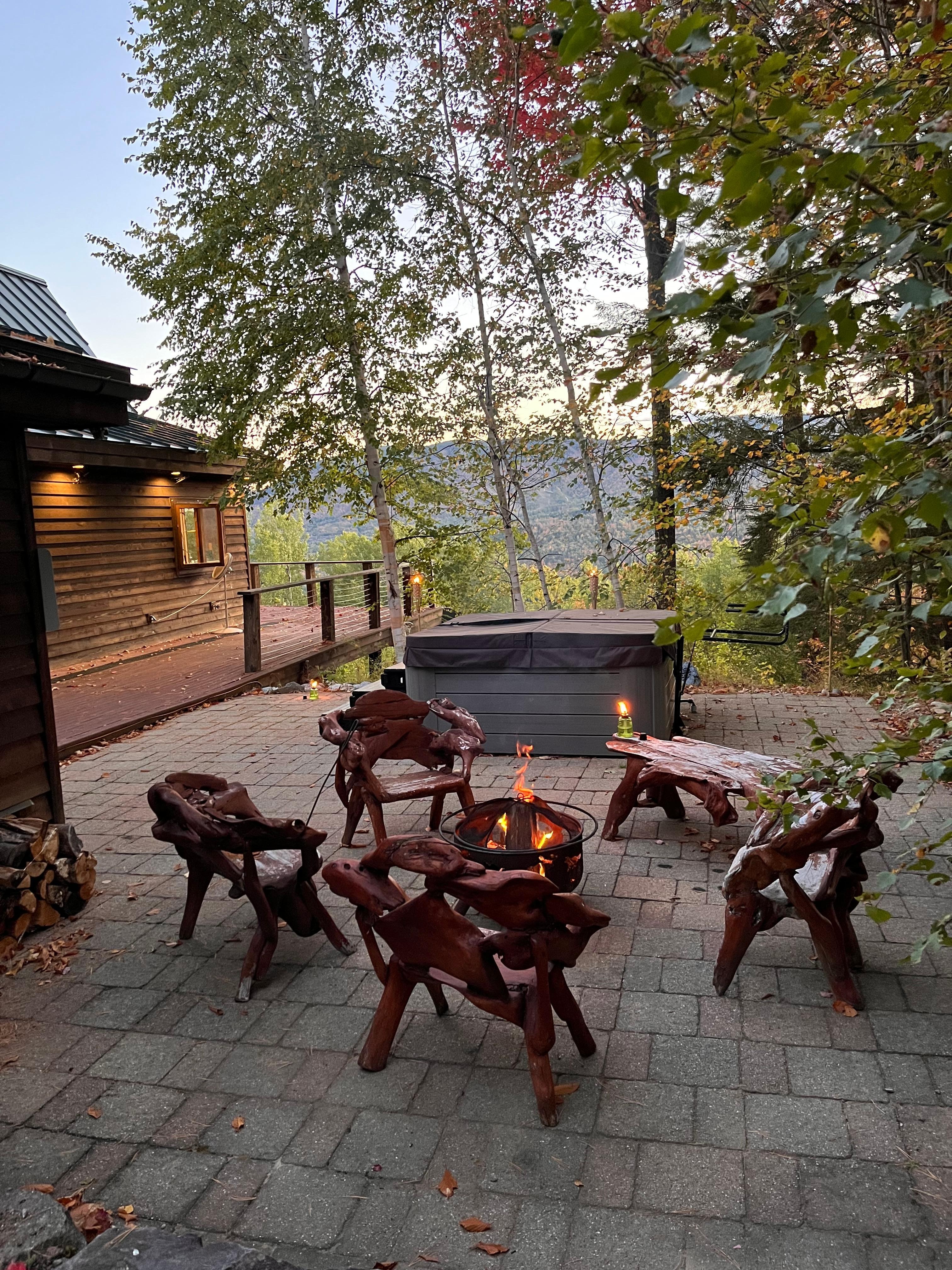 Hot tub and fire pit are great for relaxing after a day on the slopes or a hike on one of the many trails in the area.