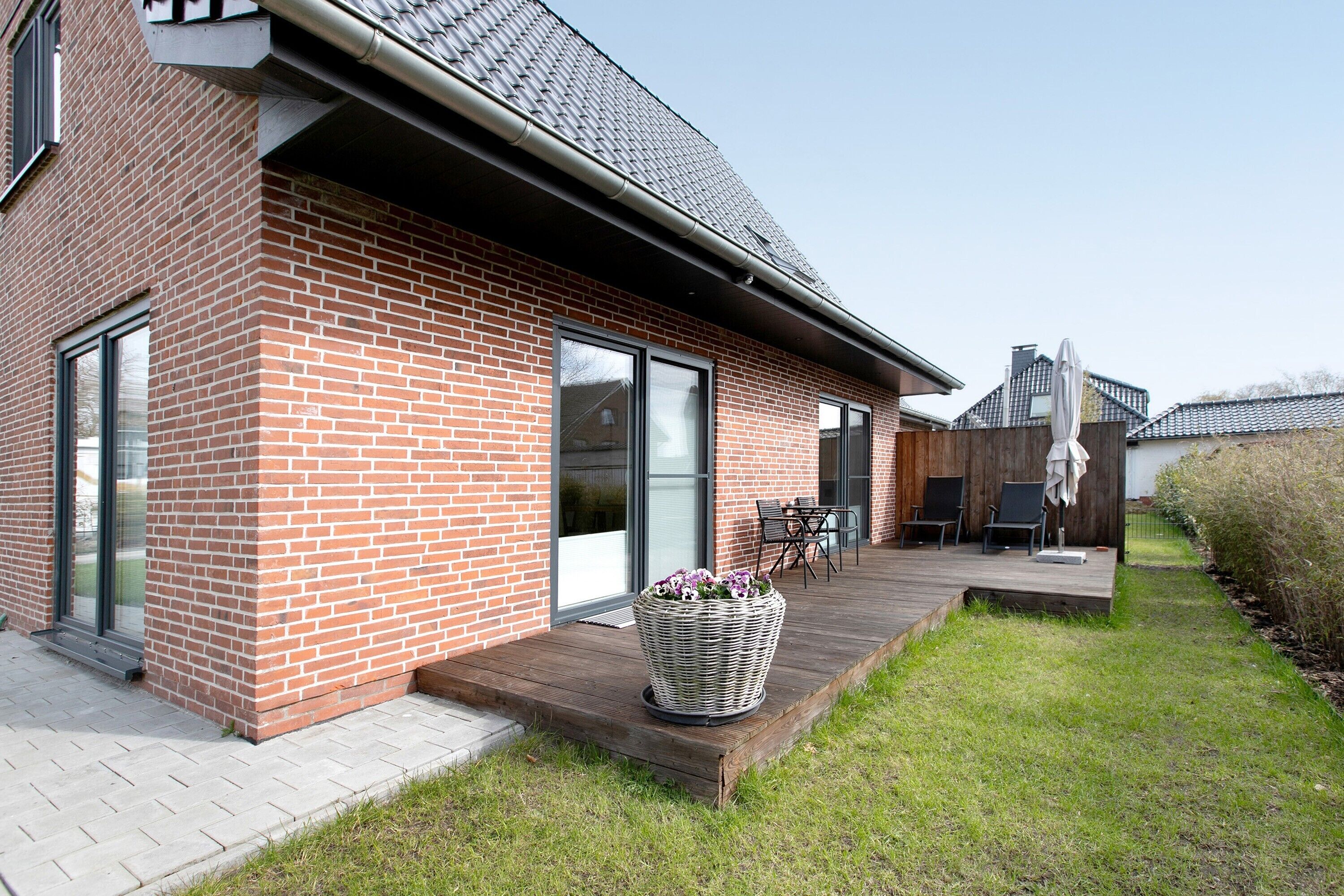 Located in Nordstrand, the holiday apartment Ferienhaus Sorgenfrei has everything you need for a comfortable holiday. The 60 m² property consists of a living room, a kitchen, 1 bedroom and 1 bathroom as well as an additional toilet and can therefore accommodate 2 people. Additional amenities include Wi-Fi as well as a TV. This vacation rental offers a private outdoor space featuring a garden, open terrace, covered terrace, and balcony.