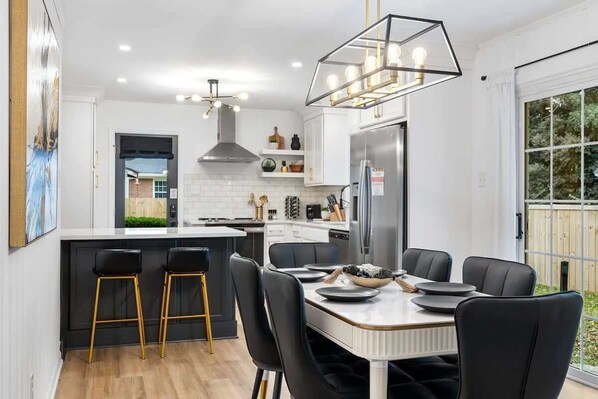 The fully equipped kitchen has everything you will need to cook your favorite meals and we also supply a coffee maker with regular and decaf coffee, and tea! The luxury dining table can seat 6 and 2 stools at the Peninsula bar.