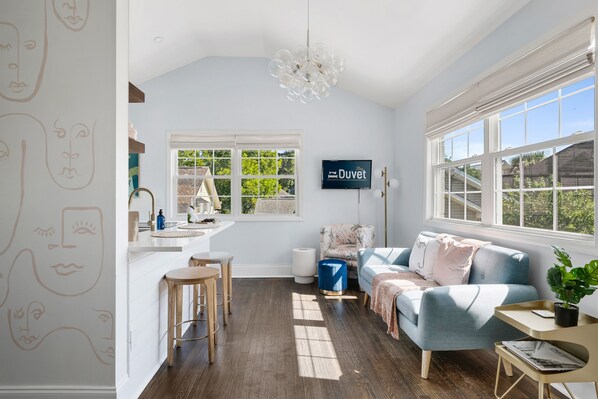 -Newly renovated with stylish decor and vibrant artwork