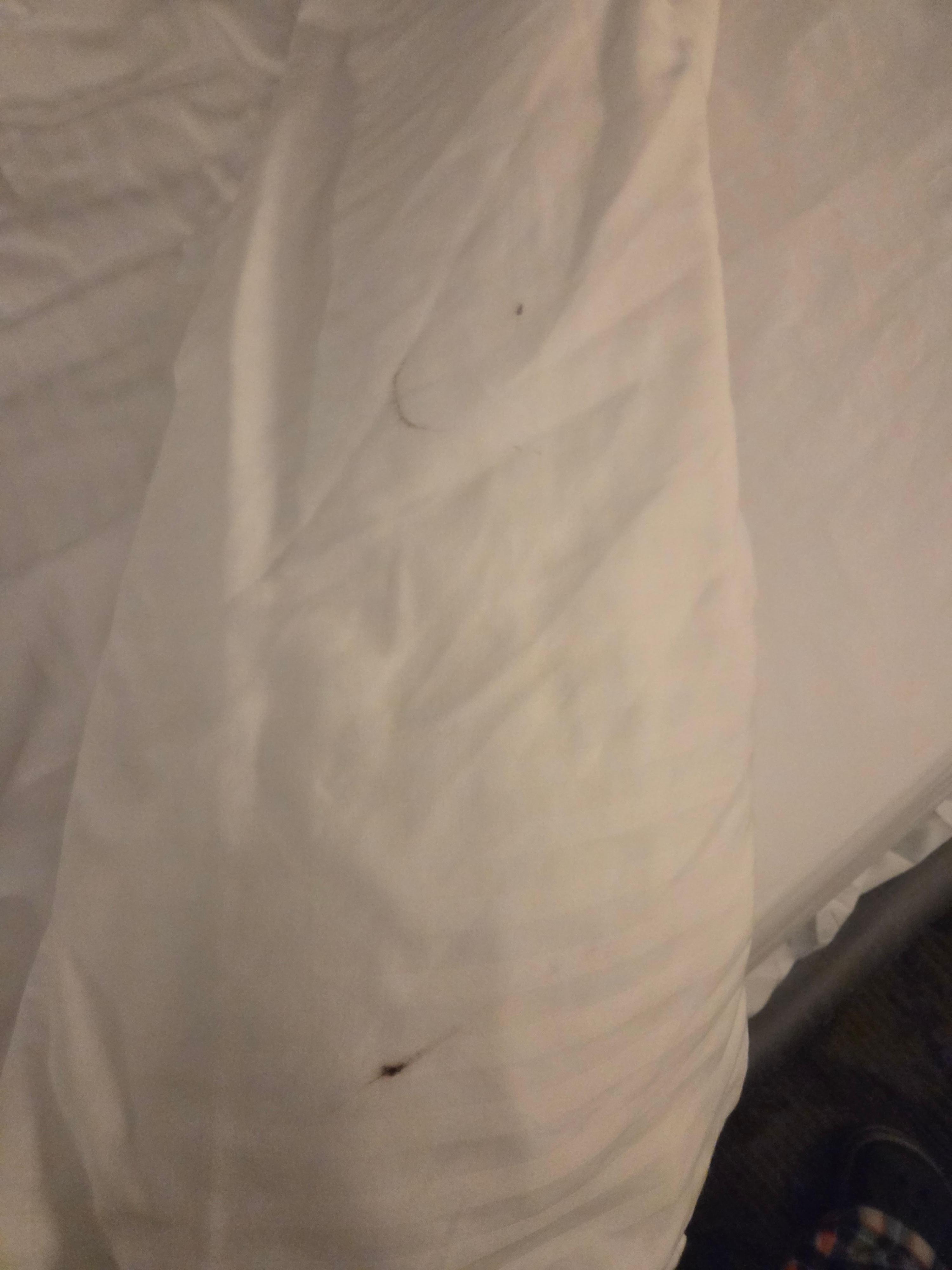 However, when I pulled the linens back I saw eye makeup all over. Not stains - I could wipe it away with my finger. Gross.