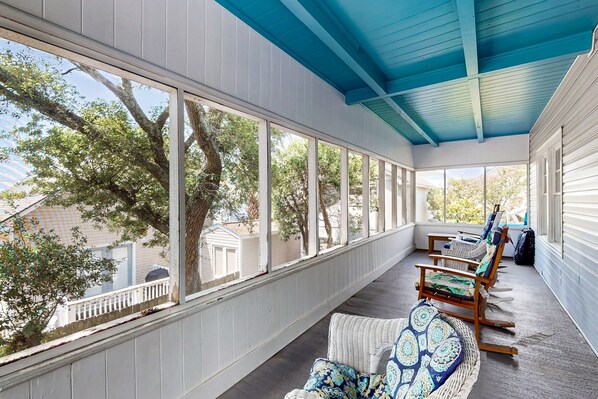 2nd-floor duplex with screened-in porch, W/D, close to beach & golf