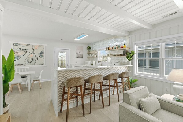 Completely renovated 4 bedroom freestanding, stilted home with a classic beach bungalow vibe, incredible ocean views and many enhancements throughout to make every person that comes with you feel a little special: