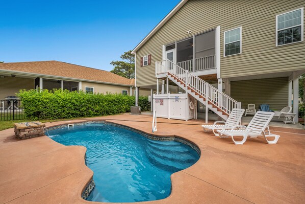Nyt det beste fra begge verdener. Stas og mas på stranden og det luksuriøse privatlivet til ditt eget svømmebasseng. Angel Oak Retreat er godt egnet for familier og golfere. Det er tre bad i denne stranden husutleie samt et møblert kjøkken med full størrelse, rustfritt hvitevarer. Stuen er mest komfortabel og verandaen er en bonus boareal med utsikt over svømmebassenget. Denne fantastiske stranden hus utleie er på stylter, i klassisk North Myrtle Beach stil. Det er WIFI i dette strandhuset, samt en vaskemaskin og tørketrommel. Et par DVD-spillere oppfordrer deg til å ta med favorittfilmene dine mens en CCTV i hvert soverom gjør at folk virkelig kan spre seg om kveldene og se favorittprogrammene sine.