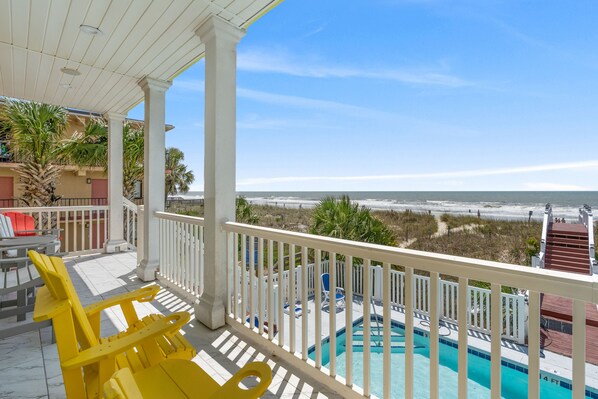 A carefree vacation is within reach at Avista Point A. This oceanfront duplex rental can comfortably accommodate guests with its seven bedrooms and eight bathrooms. One of the best perks of staying at an oceanfront rental isn’t only the quick walk out to the beach but the gorgeous views from the space as well. Guests can marvel at the ocean from the outdoor balcony and master bedroom.Outside your rental, a world of vacation fun awaits. Beat the heat with a refreshing swim in the outdoor swimming pool that is shared with Avista Point B. Best of all, take just a few steps away from your rental, and you will find your toes sinking into the warmsand of the Grand Strand’s 60-mile stretch of beach.Be sure to head to Barefoot Landing or one of the many local golf courses. North Myrtle Beach is home to a myriad of championship golf courses and multiple waterparks. No matter how old you are, there’s something for everyone.Please Note: We rent to families only.House parties, loud noises and extra vehicles are prohibited violation of this will result in eviction.