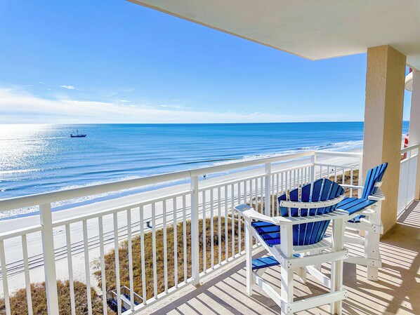 Denne leiligheten i Crescent Beach på 1525 kvadratmeter har 2 soverom og 2 bad og ligger i åttende etasje. Den romslige stuen har flatskjerm-TV med kabel-TV / DVD, sovesofa, takvifte og gratis trådløst internett. Den 25 ft havfront balkongen er tilgjengelig gjennom glass skyvedører fra stuen og master suite. Det fullt utstyrte kjøkkenet har benkeplate i granitt, frokostbar og vaskemaskin / tørketrommel i full størrelse. Hovedsoverommet har king-size-seng, flatskjerm-TV med kabel-TV / DVD, takvifte og badet har dobbel vask, boblebad og separat lukket dusj med glass. Det andre soverommet har en king size-seng, flatskjerm-kabel-TV / DVD og takvifte. Det andre badet er i hallområdet i leiligheten.