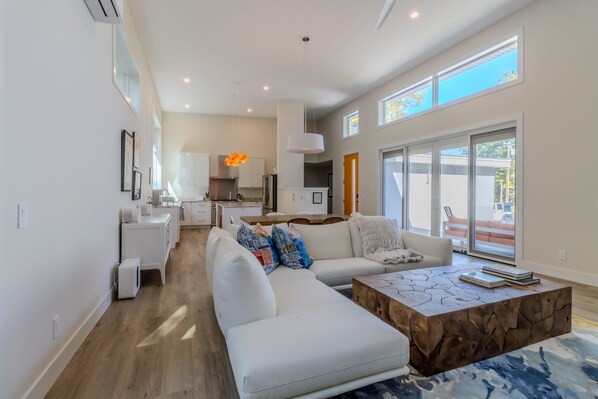 Bedroom 1: King Bed, attached bathroom with walk in shower and attached outdoor shower (seasonal use only) | Bedroom 2: Queen Bed attached bath with walk in shower | Bedroom 3: Queen Bed and twin bed with additional twin trundle. Ceiling fans and mini-split air conditioning in each bedroom. Guest Capacity: 8
