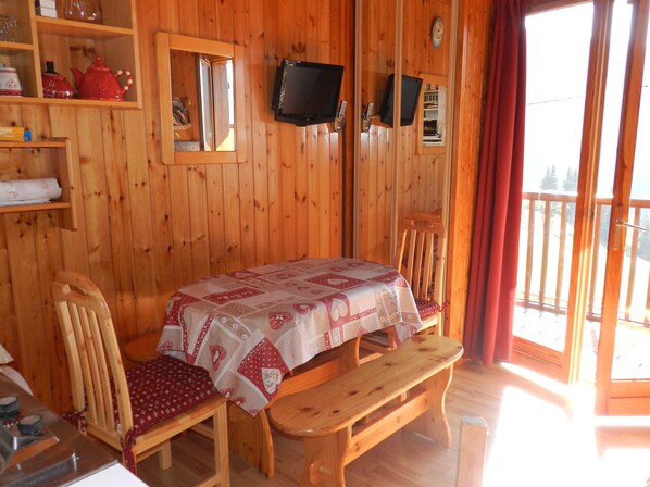 Denne leiligheten ligger på fjellet og 2 kilometer unna Mont Rond skiheis og Planay skiheis. Dessuten ligger Evettes skiheis og Cernix skiheis kun 10 kilometer unna.