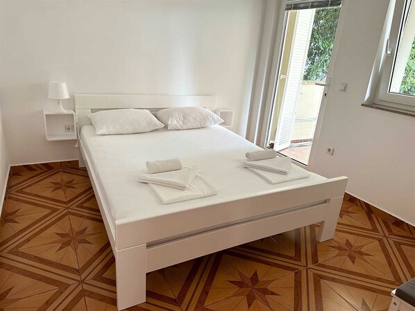 Standard apartment situated in thirdhouse of Bella Sky apartments complex. Apartment has twobedrooms with queensize beds, each room for two people, fully equipped kitchen, living room with sofa for two people and TV, bathroom with shower and terrace with garden view and sitting area.Apartment can accomodate up to 6 guests and is located on groundfloor. Apartments Bella Sky are near the city center, right on the shore, closeto the beach, city centre, shops, market and restaurants.