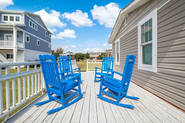 As you enter, the Danish term Hygge comes to mind. A Quality of Coziness & Comfortability that Creates Feelings of Contentment & Well-Being. In the Living Area, 2 Navy Starfish Print Upholstered Chairs bring a Nautical Vibe into the Room. The Comfy Sofa reminds you of Silky Golden Sands & the Pillow, Pigments of Coral. Relax while you watch your Favorite Shows on the TV with Extended Cable. The Proximity of the Living, Dining & Kitchen Areas makes it possible to be Together while Engaged in your Own Activity. The Kitchen has all the Essentials including Drip Coffee Maker, Blender, 2 Slot Bagel-Sized Toaster, Cast Iron Pan & Crockpot. The Cottage-Style White Dining Table Seats 4 on Matching Stools. Service & Cleanup for Meals is Quick & Easy. Although there is No Automatic Dishwasher, You can Gaze out the Window above the Sink while you Wash the Dishes. Ella Fitzgerald Sang that View as, “Blue skies, Smiling at me, Nothing but blue skies, Do I see”.