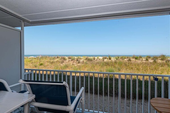 The best sunrises await your arrival! Nicely updated 1BR 1 and 1/2 bath OCEAN FRONT condo with a large balcony and walk out level to the beach/ocean. Located in North Ocean City away from all of the hustle and bustle, but walking distance to so many great places. Just across the street from the Fenwick Inn and the Vista Rooftop. Walk to Sushi, Billy's Subs, Pirate Mini Golf, Taphouse Tavern, and Shopping at Sunsations. This condo has all you need for your next vacation.