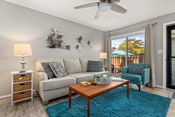 Split floor plan with bedrooms on each side of the living room.