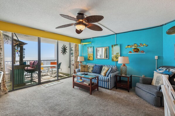 Pyramid 10F is an oceanfront condo with beautiful views of the beach and the Atlantic Ocean.