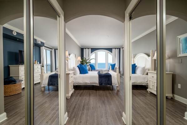 Find quiet privacy in the luxurious main bedroom with stunning views of the ocean, beach, and boardwalk, private access to the balcony, and a 50-inch Roku-enabled smart TV, plus an en-suite bathroom with a double walk-in closet, a double vanity, a jetted soaking tub, a private washer/dryer, and a walk-in shower. The second bedroom is a true retreat from the hustle and bustle of Ocean City's excitement. This oasis boasts an en-suite bathroom with a shower/tub combo, a 50-inch Roku-enabled smart TV. A third guest suite is designed as a call back to the 90s, featuring a Nintendo NES Classic gaming console, and a 55-inch smart TV. This room is the perfect hangout for your crew to play games, stream movies and shows, or snap selfies in front of the mural wall. This room is connected to a spacious guest bathroom, which features a walk-in shower. Extra perks include high-speed internet, free WiFi, with over 700 channels available on the TVs. You'll also have access to a shared pool, a putting green, a gym, a single-level floor plan, an elevator, 24/7 building security, and secure parking for up to two vehicles.